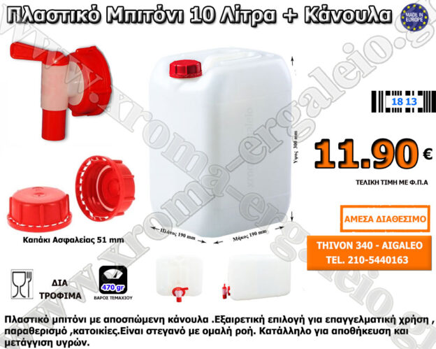 Πλαστικά μπιτόνια με κάνουλα από 11.90 €. Αμεσα διαθέσιμα