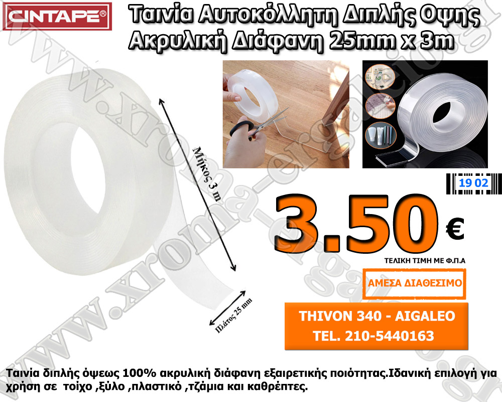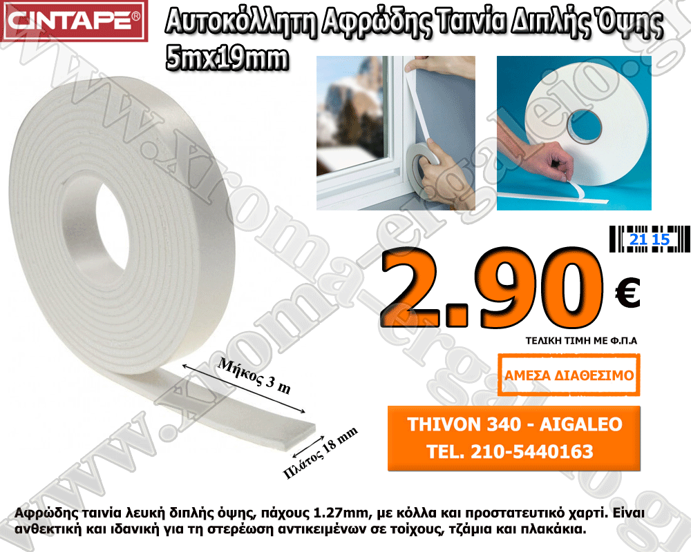 cintape αυτοκόλλητη αφρωδης ταινία διπλής όψης 5m x 19mm