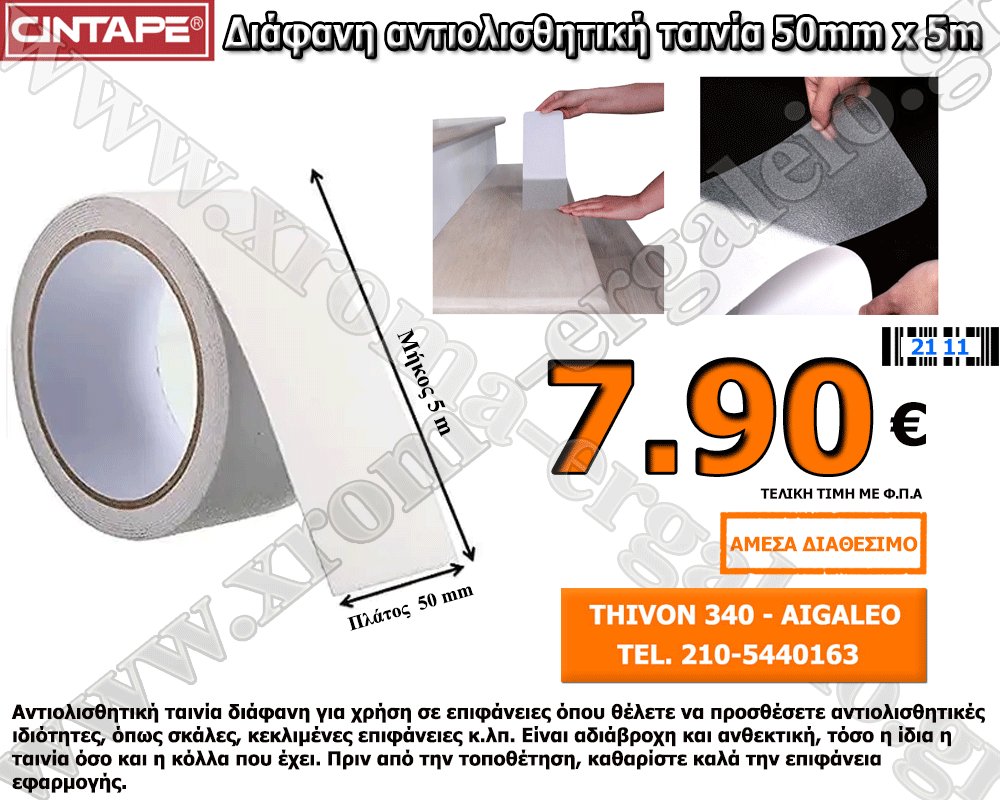 Cintape αντιολισθητική ταινία διάφανη για μπάνιο-μπανιέρα 50mm x 5m