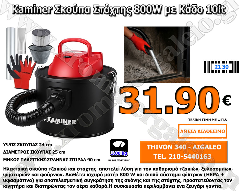 Η ηλεκτρική σκούπα τζακιού και στάχτης KAMINER 26240 αποτελεί λύση για τον καθαρισμό τζακιών, ξυλόσομπων, ψησταριών και φούρνων. Διαθέτει ισχυρό κινητήρα 800 W και διπλό σύστημα φίλτρων (HEPA + υφασμάτινο) για αποτελεσματική συγκράτηση της σκόνης και της στάχτης, προστατεύοντας τον κινητήρα και διατηρώντας τον αέρα καθαρό. Η λειτουργία φυσητήρα επιτρέπει την απομάκρυνση φύλλων, σκόνης και σκουπιδιών από αυλές και γκαράζ, καθιστώντας τη συσκευή 2-σε-1. Το μεταλλικό εσωτερικό του σωλήνα αναρρόφησης αυξάνει τη διάρκεια ζωής και την ασφάλεια χρήσης.