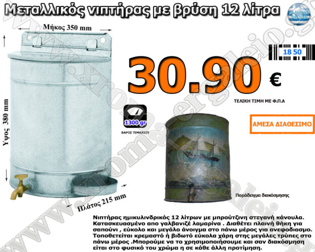 Πλαστικός νιπτήρας με βρύση και γαλβανιζέ χερούλι.Ειναι χρήσιμο για την εξοχή , τα ταξίδια ,το camping αλλά και εσωτερικούς χώρους.Μπορουμε να το χρησιμοποιήσουμε για ποικίλες χρήσεις όπως πλύσιμο σκευών κ.α