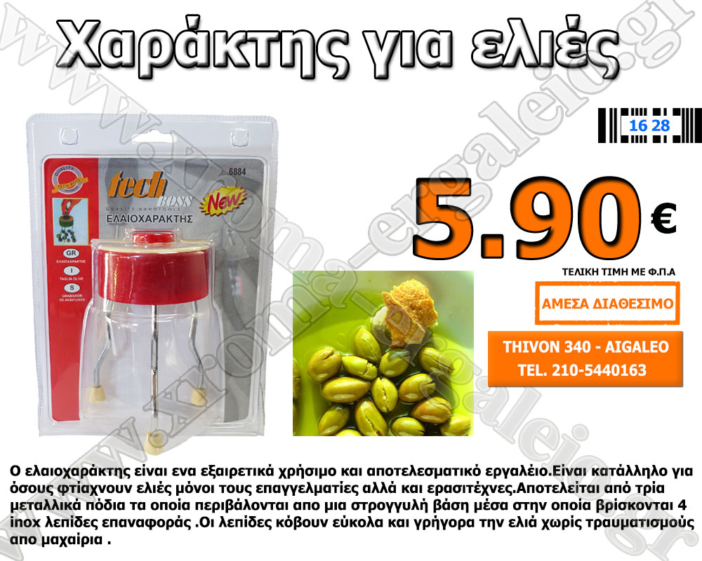 Ο ελαιοχαράκτης είναι ενα εξαιρετικά χρήσιμο και αποτελεσματικό εργαλέιο.Είναι κατάλληλο για όσους φτίαχνουν ελιές μόνοι τους επαγγελματίες αλλά και ερασιτέχνες.Αποτελείται από τρία μεταλλικά πόδια τα οποία περιβάλονται απο μια στρογγυλή βάση μέσα στην οποία βρίσκονται 4 inox λεπίδες επαναφοράς .Οι λεπίδες κόβουν εύκολα και γρήγορα την ελιά χωρίς τραυματισμούς απο μαχαίρια . Για περισσότερες […]