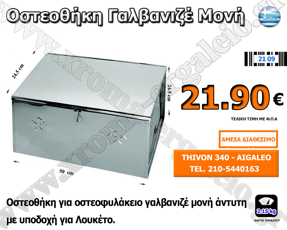 Οστεοθήκες γαλβανιζέ και ανοξείδωτες μονές ή διπλές με βάση για λουκετο για οστεοφυλάκειο . Για περισσότερες πληροφορίες καλέστε μας στο 210-5440163 Το κατάστημα μας βρίσκεται στο Αιγάλεω – Θηβών 340 δείτε το χάρτη εδώ
