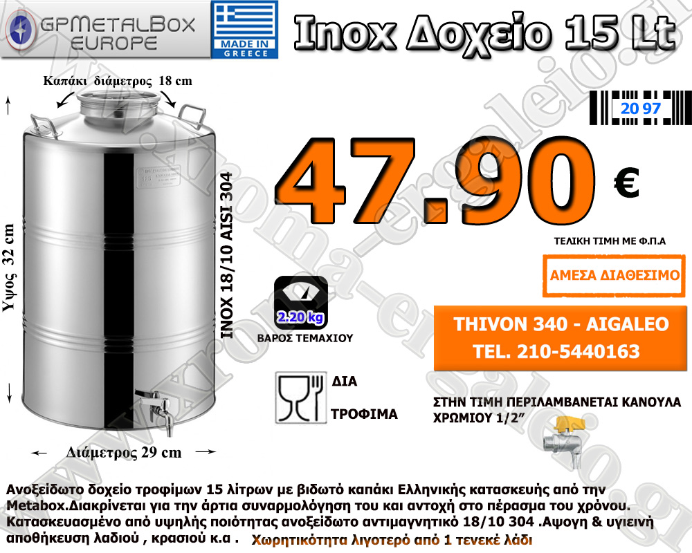 Βαρέλια inox Metalbox από 47.90 €. Αμεσα διαθέσιμα
